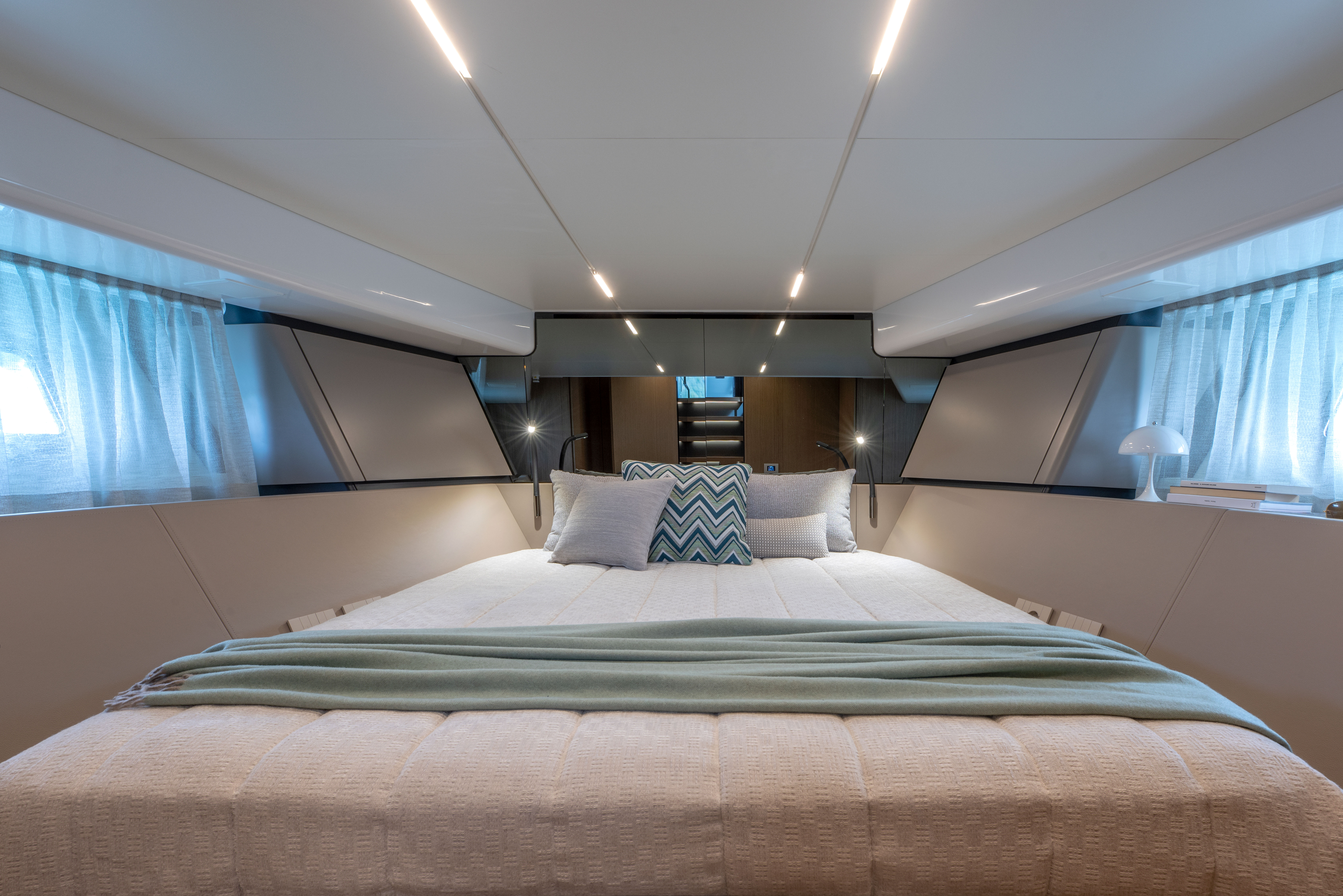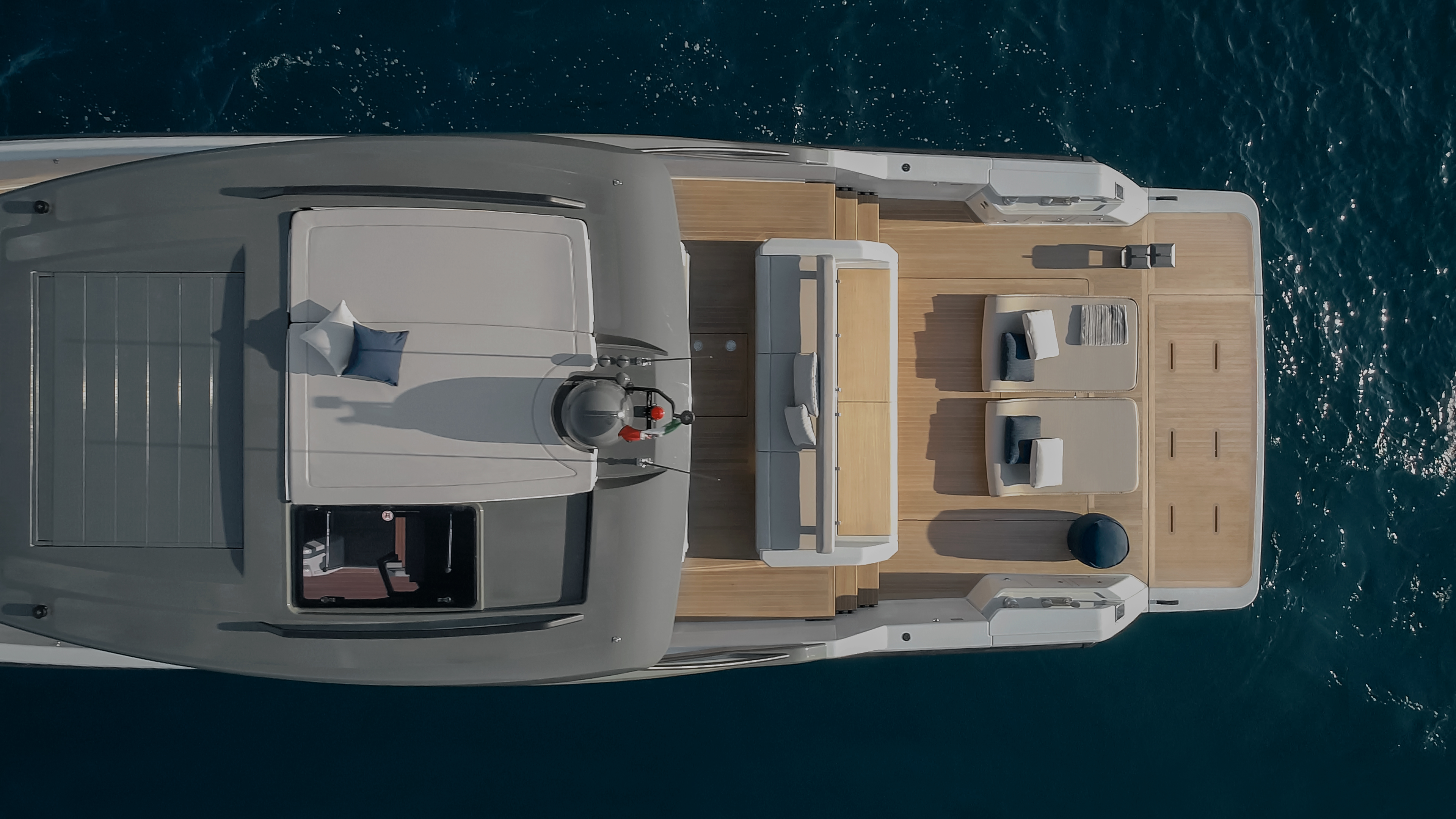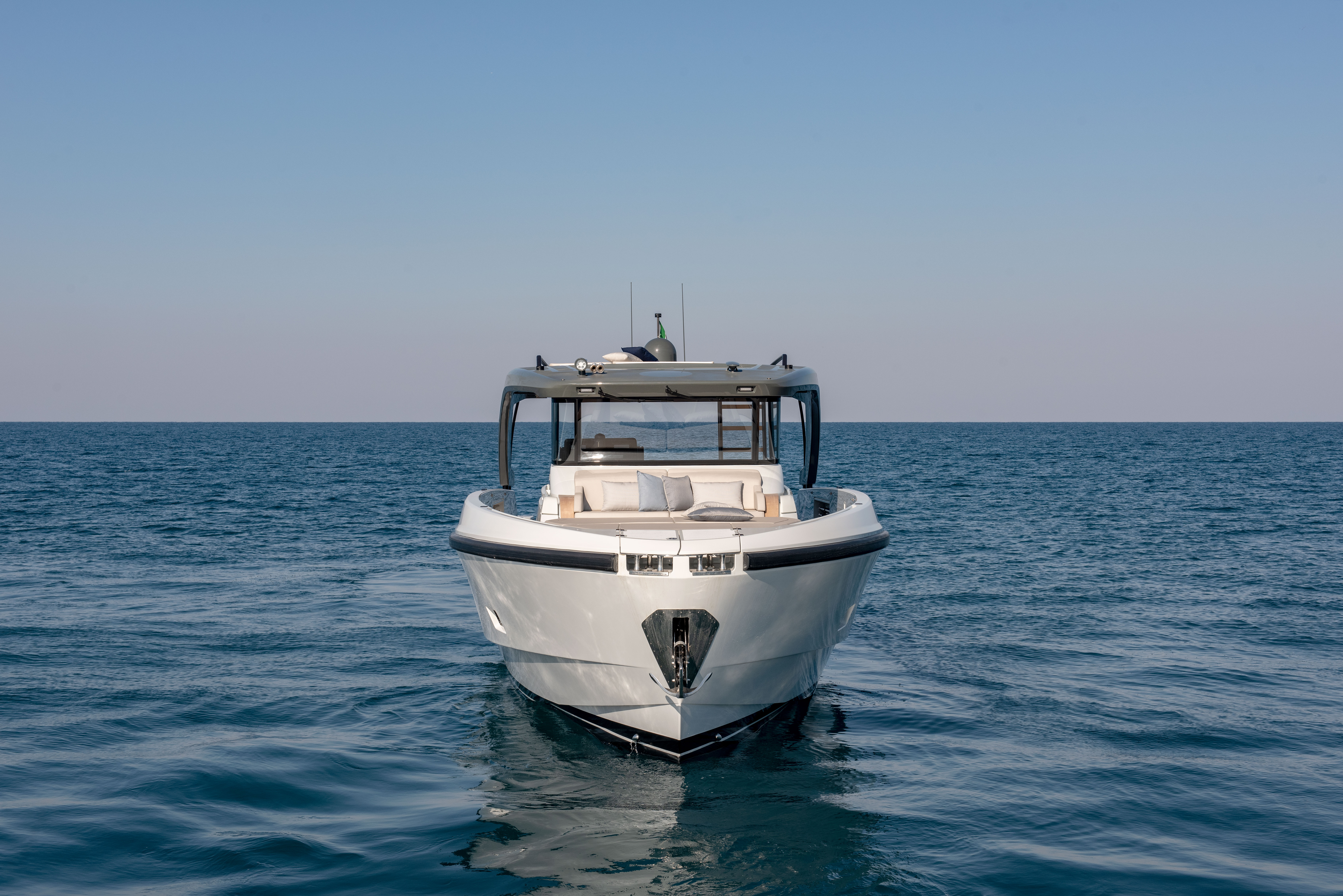 The 360° open cockpit delivers breathtaking views, while the hardtop includes an access ladder leading to an elevated sunpad for an unrivalled vantage point. The wheelhouse, with its signature reverse windshield remains unsurpassed for maximum visibility.
