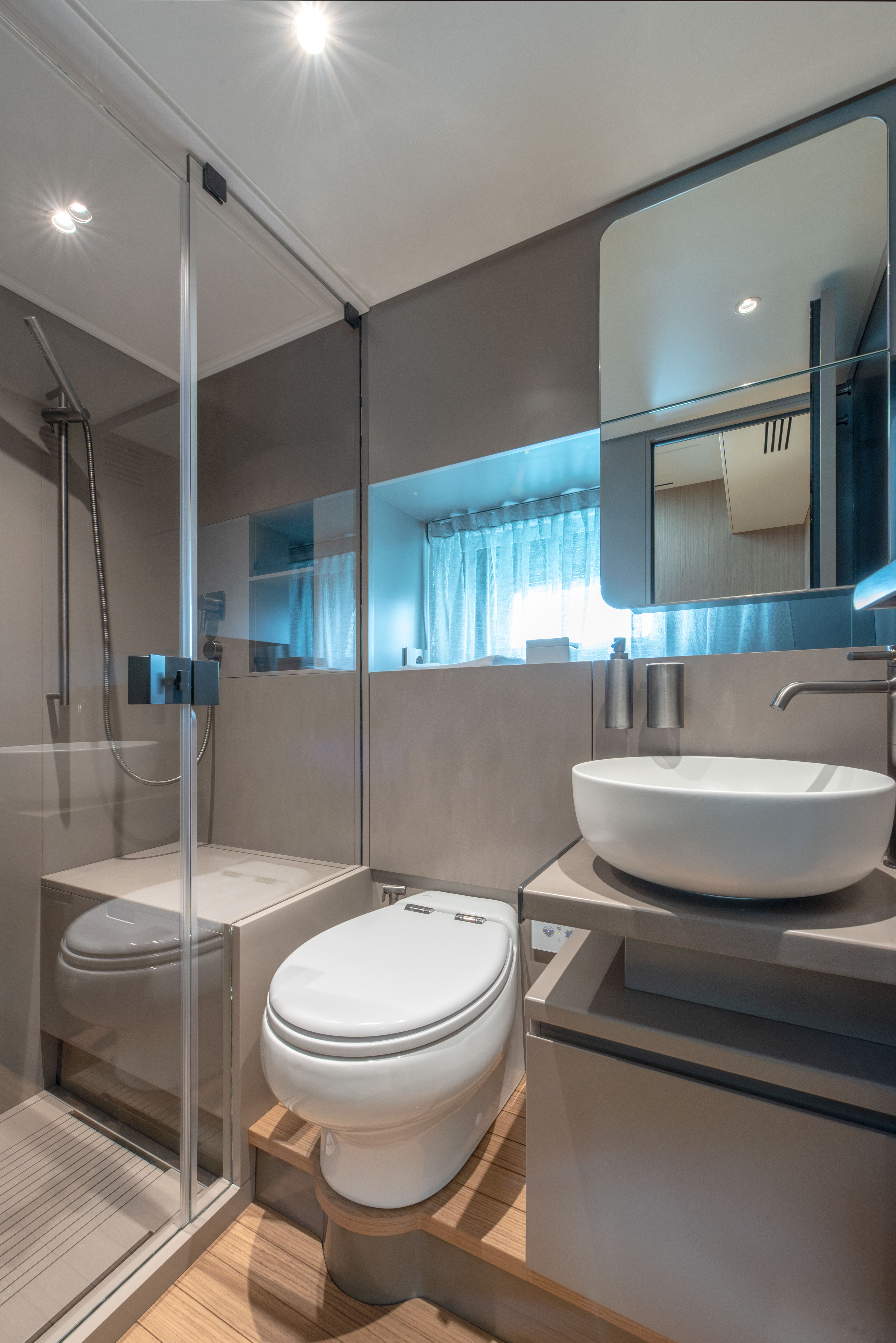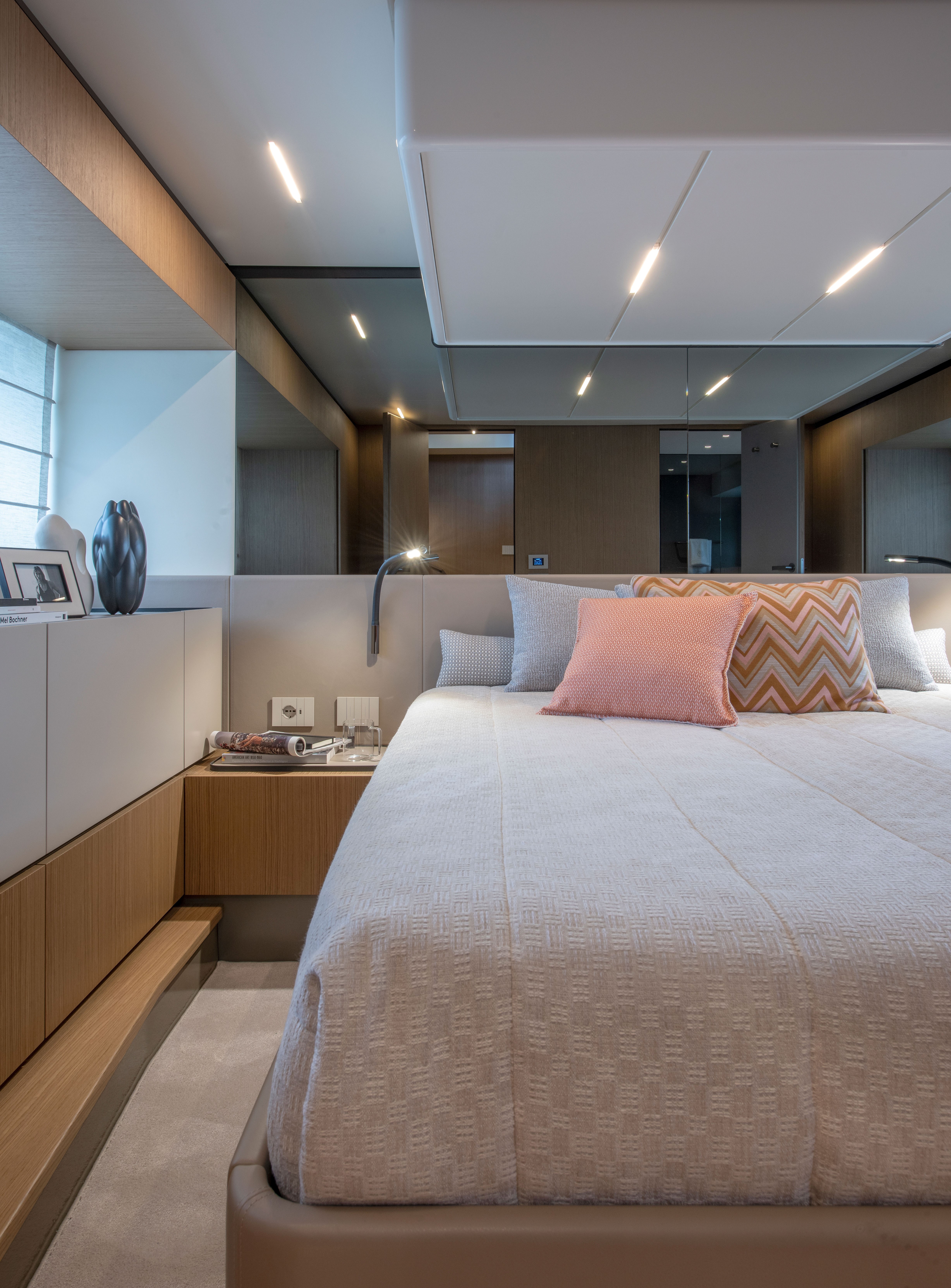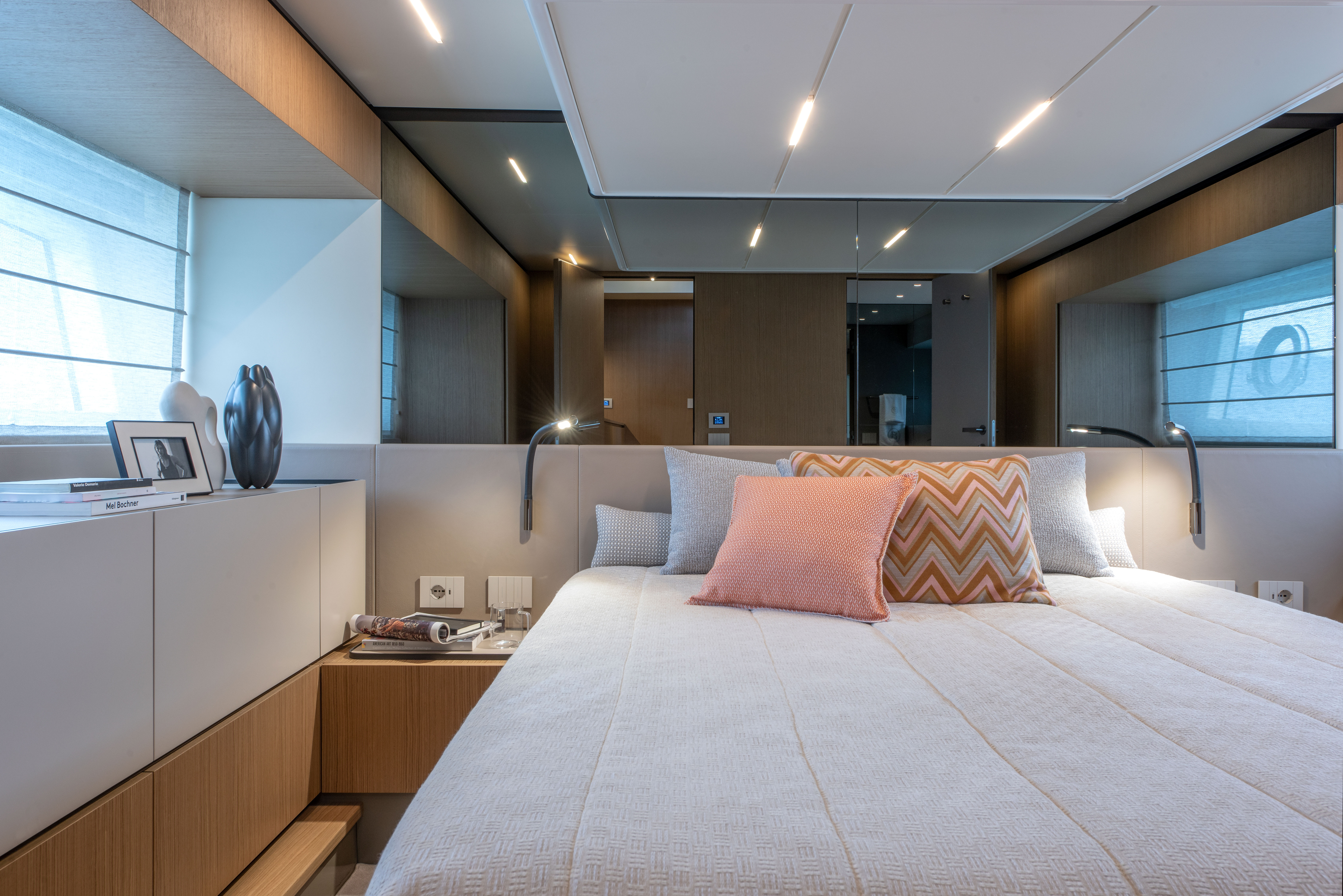 The 360° open cockpit delivers breathtaking views, while the hardtop includes an access ladder leading to an elevated sunpad for an unrivalled vantage point. The wheelhouse, with its signature reverse windshield remains unsurpassed for maximum visibility.