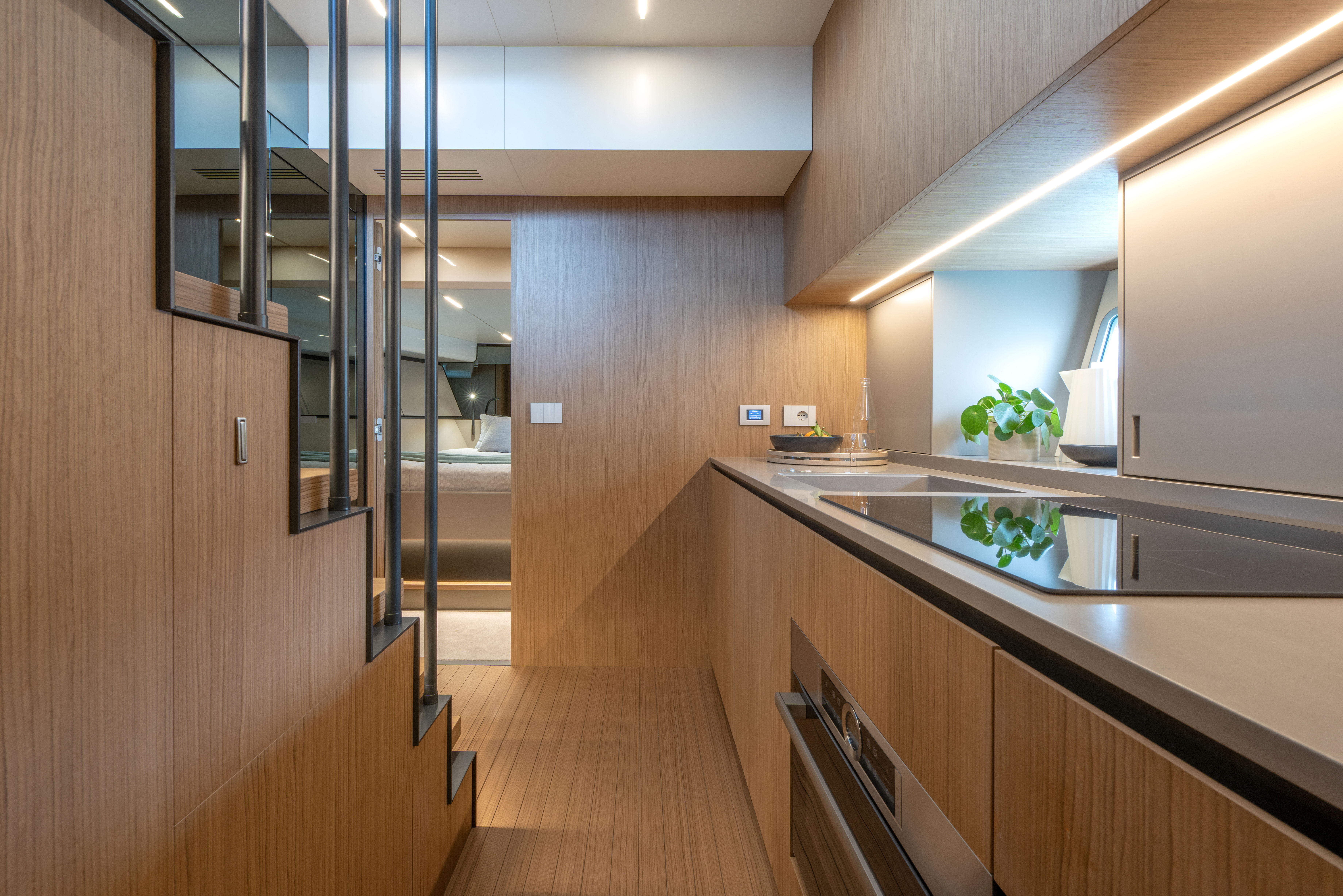 At the stern, a spacious beach club leads to a versatile platform that can accommodate a tender or transform into an immersed swimming area—perfect for seamless access to the water. The bow features an exclusive lounge area with plush seating and a sunpad, offering a private retreat for relaxation and socialising.