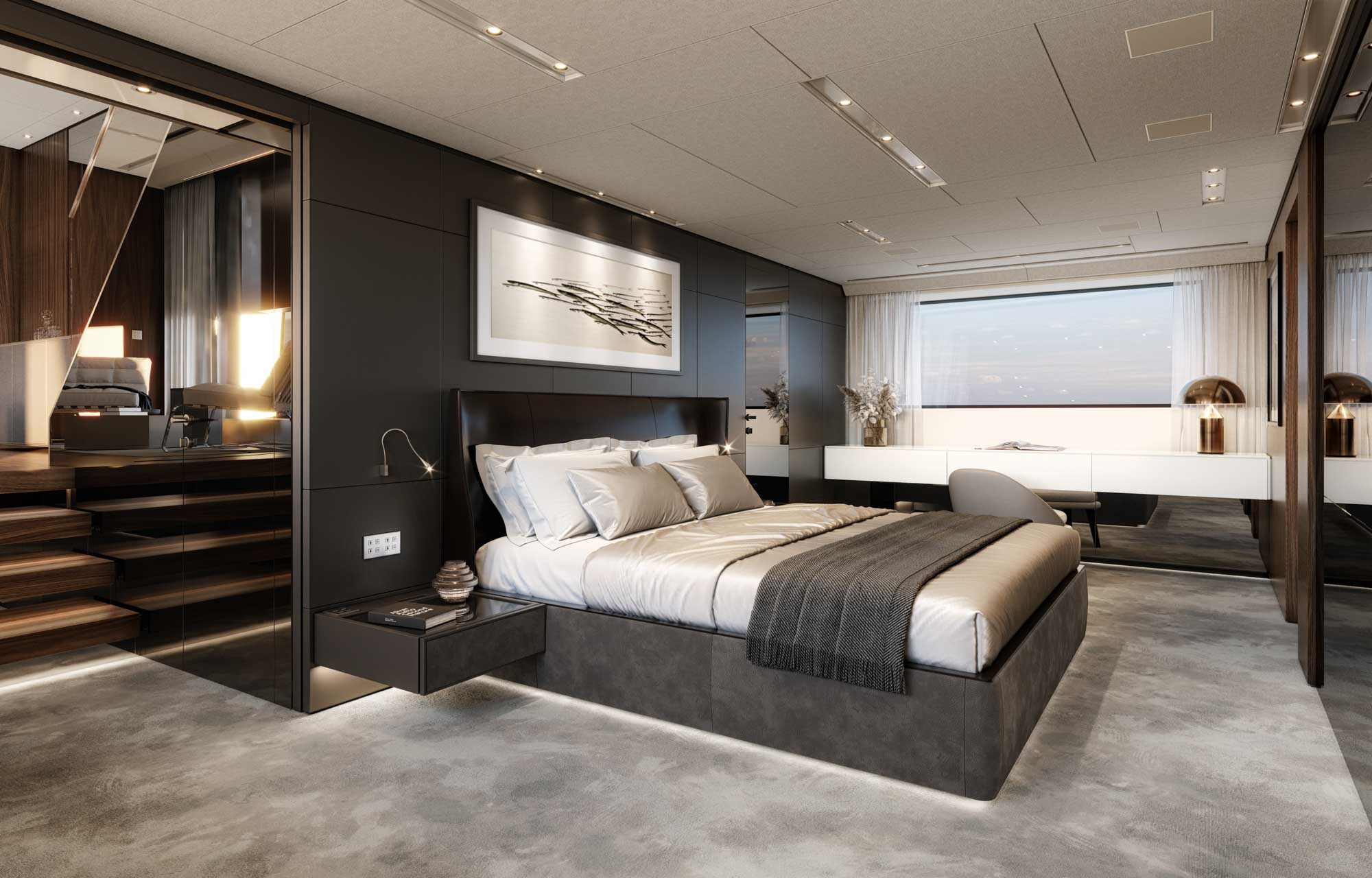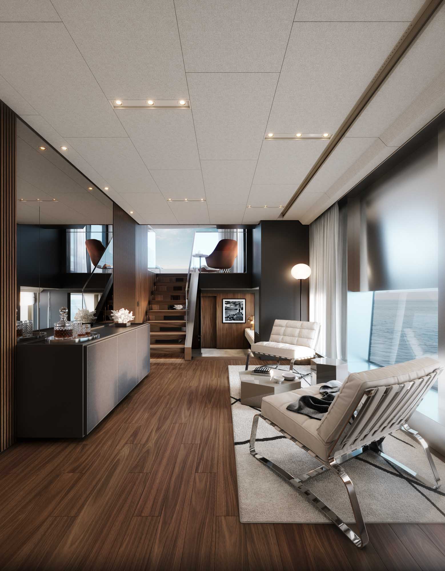Its striking profile is defined by clean, sporty lines and distinctive cutouts, offering uninterrupted sea views from both the main deck and the sky lounge on the upper deck. This thoughtful design enhances the yacht’s sense of openness and connection to the water, while the Alloy’s advanced engineering ensures high performance combined with luxurious comfort—a true testament to Sanlorenzo’s expertise and vision.