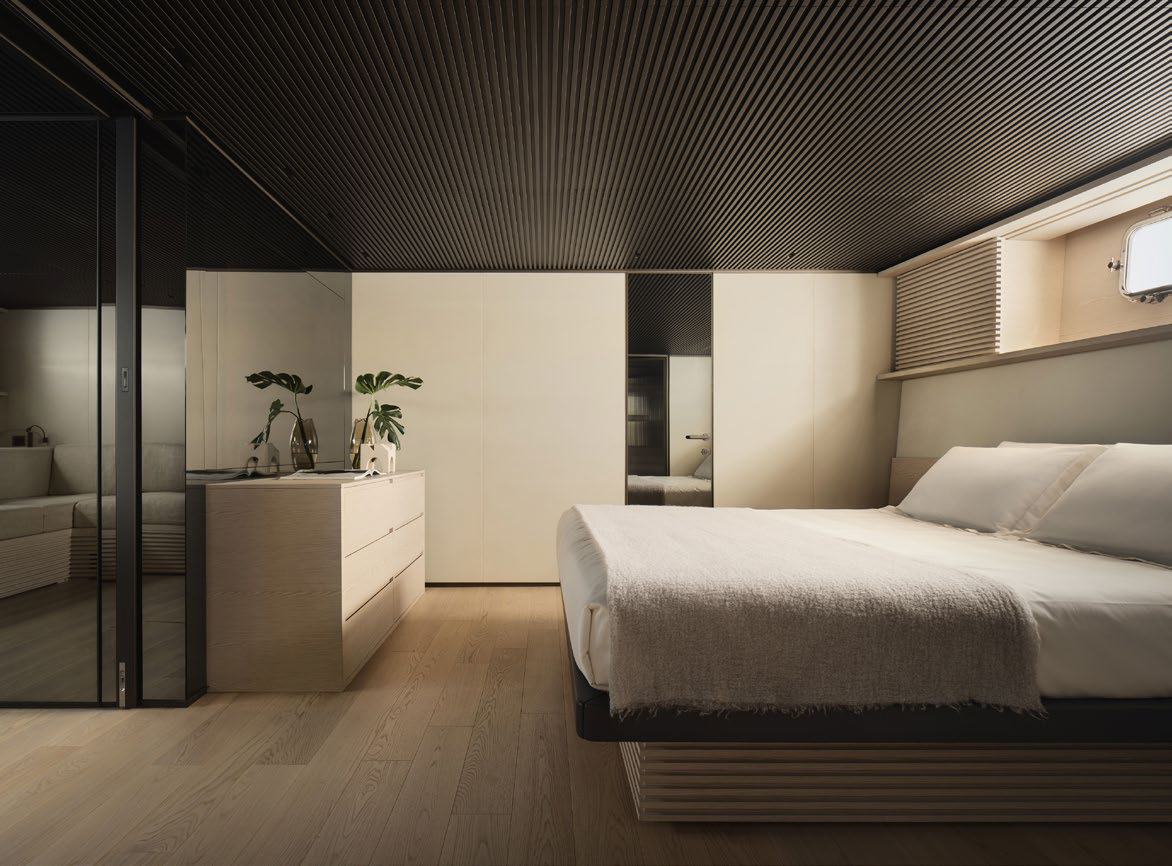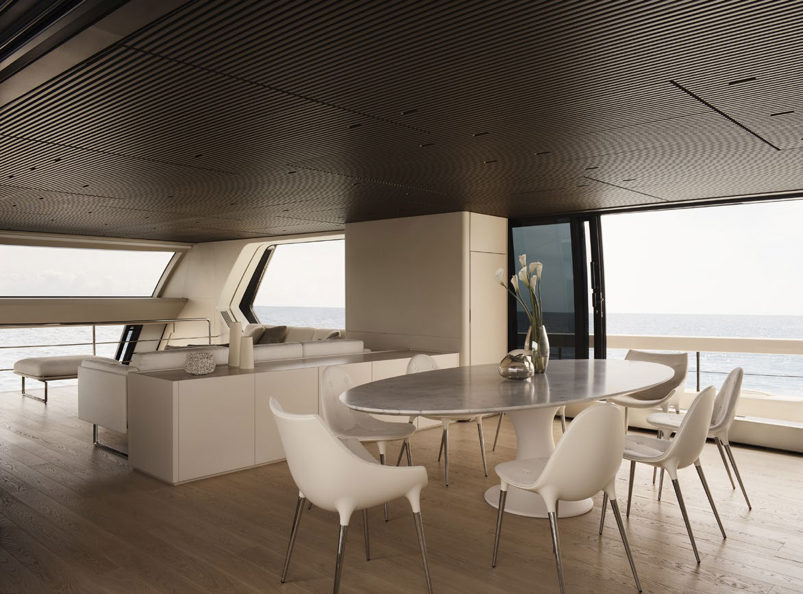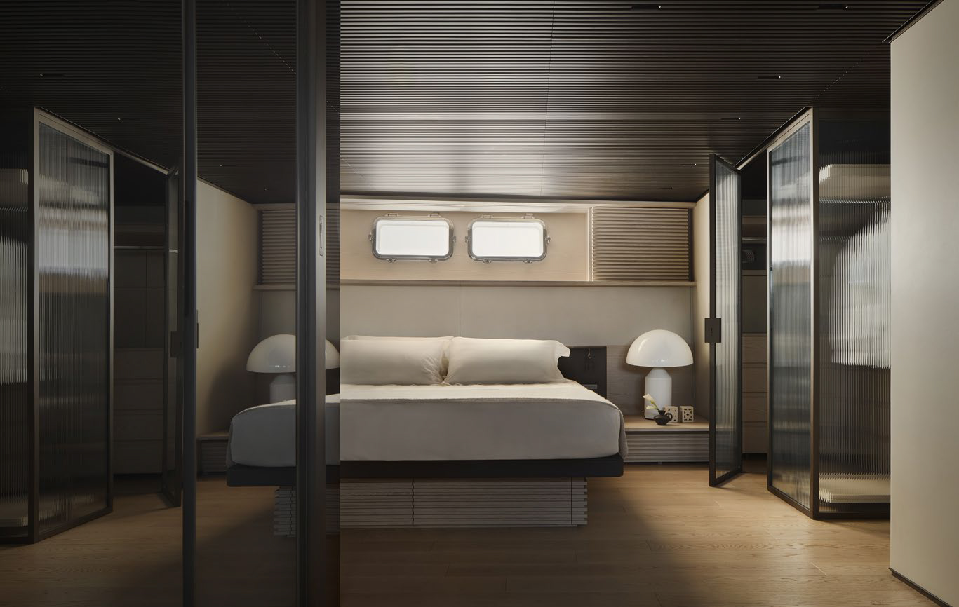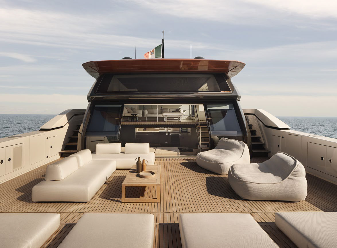 Designed by renowned naval architect Bernardo Zuccon, the SP110’s exterior embodies refined simplicity, with sleek, purposeful lines that underscore its sporty character. The sophisticated interiors by Lissoni & Partners reflect understated elegance, while the eco-conscious power package enhances efficiency without compromising performance.