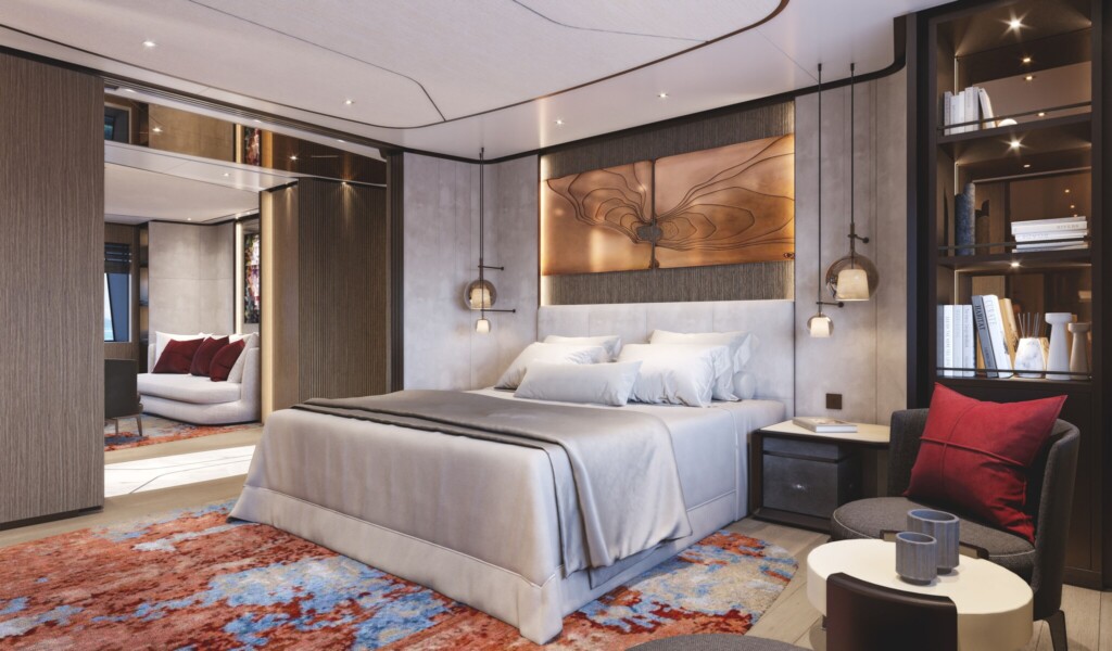 Strategic access points ensure that the owner can enjoy complete privacy, with staircases designed to prevent unwanted entry to the owner’s deck when desired. Thoughtful layouts also extend to the suite’s forward terrace, where the owner can enjoy uninterrupted views and outdoor relaxation in a space designed for both tranquillity and connection to the natural surroundings.